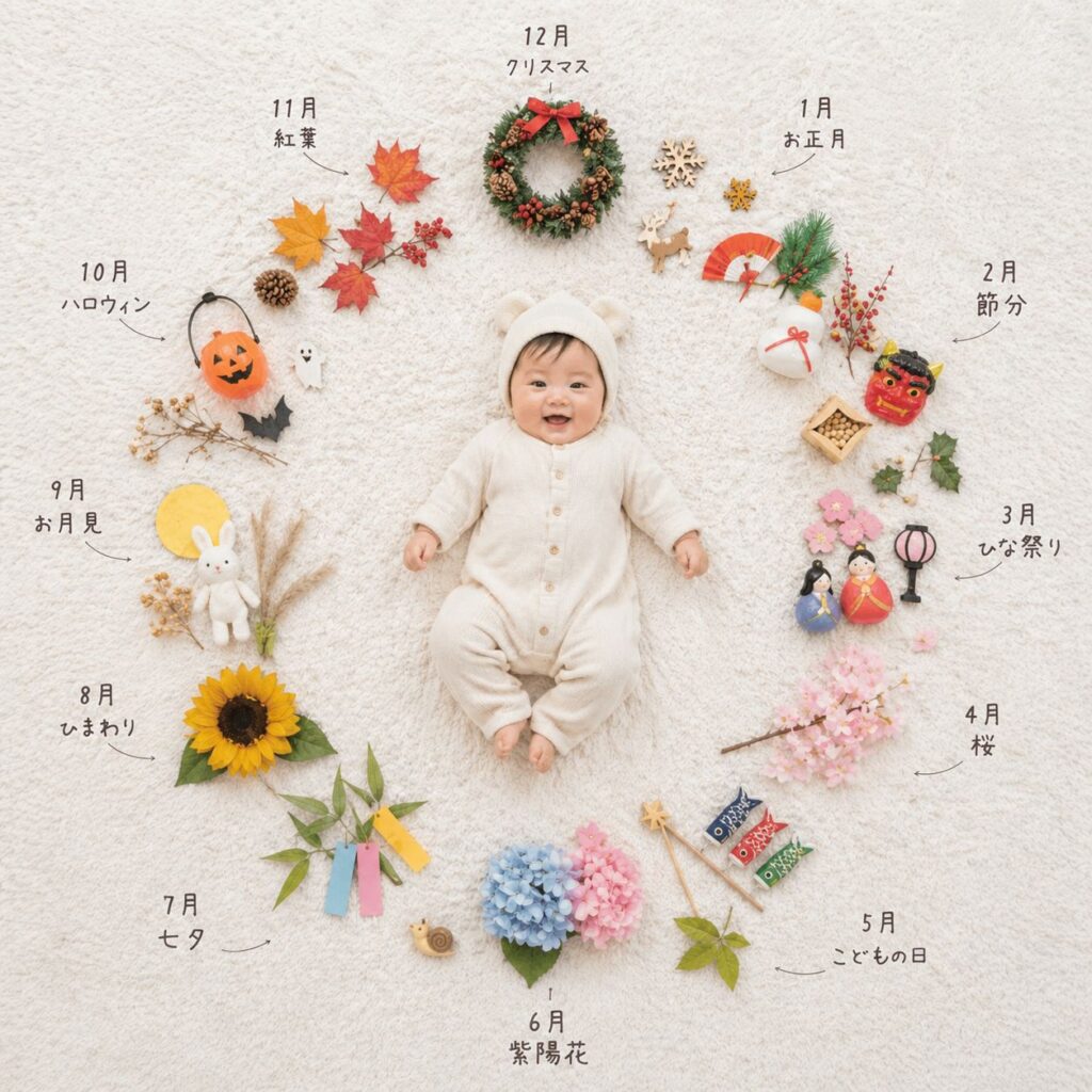 あれこれ置きたくなりますが、「テーマを1つ」に絞ることで、主役の赤ちゃんが引き立ち、配置にも迷わなくなります。